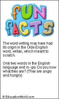 Using this Fun Facts feature is simple. The images below are designed to fit your newsletter's 2- or 3-column format. Just click on the image you want to use in your newsletter and copy and paste it into your school newsletter template. Voila! -- ready-made content for your parent or staff newsletter. You can use the image in your send-home or online parent newsletter without permission. Any other use of this material in print or on the Web is not allowed without the written consent of EducationWorld.com.